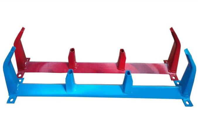 優(yōu)質(zhì)的托輥支架裝置既便于更換托輥的托輥支架裝置,涉及有可偏轉(zhuǎn)托輥支架、支座、銷軸、機(jī)身、托輥、限位塊和緊固件組成。支座下端與機(jī)身上端用緊固件連接在一起,支座則用銷軸與可偏轉(zhuǎn)托輥支架連接在一起,在可偏轉(zhuǎn)托輥支架上設(shè)置有托輥。在可偏轉(zhuǎn)托輥支架上,設(shè)置有供繞銷軸轉(zhuǎn)動(dòng)的卡槽,托輥則安裝在可偏轉(zhuǎn)托輥支架的卡槽中,在可偏轉(zhuǎn)托輥支架上設(shè)置有控制偏轉(zhuǎn)角度的限位塊。在支座或機(jī)身上設(shè)置有供可偏轉(zhuǎn)托輥支架繞其轉(zhuǎn)動(dòng)的銷軸,在拆下緊固件的情況下,可偏轉(zhuǎn)托輥支架可以在限位塊的控制下繞水平固定的銷軸轉(zhuǎn)動(dòng)一定的角度。 槽型支架屬于托輥支架的一種。采用先進(jìn)的生產(chǎn)工藝,保證產(chǎn)品質(zhì)量。槽型托輥清除皮帶沾物,在斜坡皮帶上送力大,阻力小,效果最佳。雙節(jié)托輥,能減輕皮帶在陶瓷托輥上的重形壓力點(diǎn),托輥中空裝置能使帶沾物自行掉落,不沾吸托輥,均能延長托輥使用期。