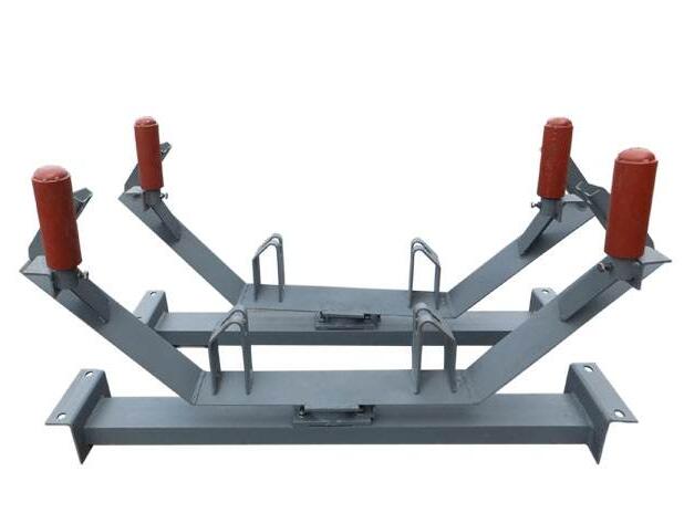 優(yōu)質(zhì)的托輥支架裝置既便于更換托輥的托輥支架裝置,涉及有可偏轉(zhuǎn)托輥支架、支座、銷軸、機(jī)身、托輥、限位塊和緊固件組成。支座下端與機(jī)身上端用緊固件連接在一起,支座則用銷軸與可偏轉(zhuǎn)托輥支架連接在一起,在可偏轉(zhuǎn)托輥支架上設(shè)置有托輥。在可偏轉(zhuǎn)托輥支架上,設(shè)置有供繞銷軸轉(zhuǎn)動(dòng)的卡槽,托輥則安裝在可偏轉(zhuǎn)托輥支架的卡槽中,在可偏轉(zhuǎn)托輥支架上設(shè)置有控制偏轉(zhuǎn)角度的限位塊。在支座或機(jī)身上設(shè)置有供可偏轉(zhuǎn)托輥支架繞其轉(zhuǎn)動(dòng)的銷軸,在拆下緊固件的情況下,可偏轉(zhuǎn)托輥支架可以在限位塊的控制下繞水平固定的銷軸轉(zhuǎn)動(dòng)一定的角度。 槽型支架屬于托輥支架的一種。采用先進(jìn)的生產(chǎn)工藝,保證產(chǎn)品質(zhì)量。槽型托輥清除皮帶沾物,在斜坡皮帶上送力大,阻力小,效果最佳。雙節(jié)托輥,能減輕皮帶在陶瓷托輥上的重形壓力點(diǎn),托輥中空裝置能使帶沾物自行掉落,不沾吸托輥,均能延長托輥使用期。